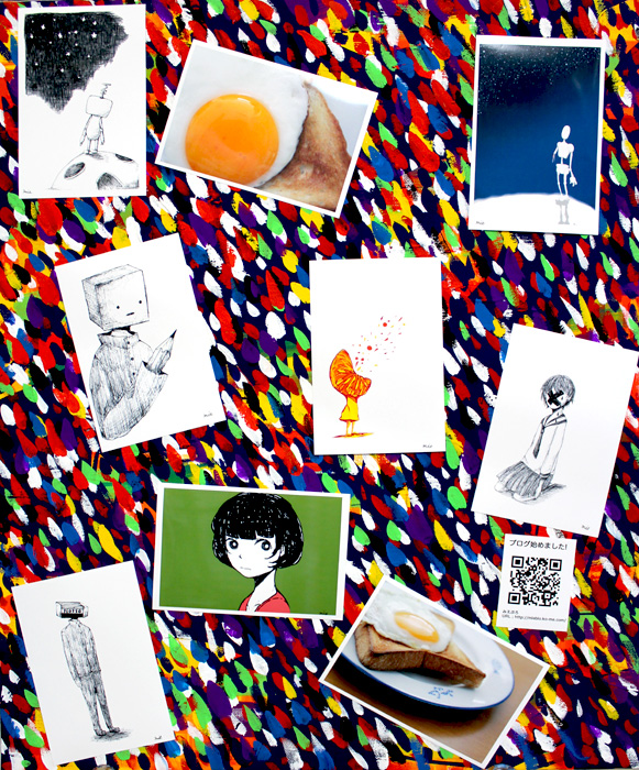パネルにペタペタとポストカードを貼っての出品をしていました!